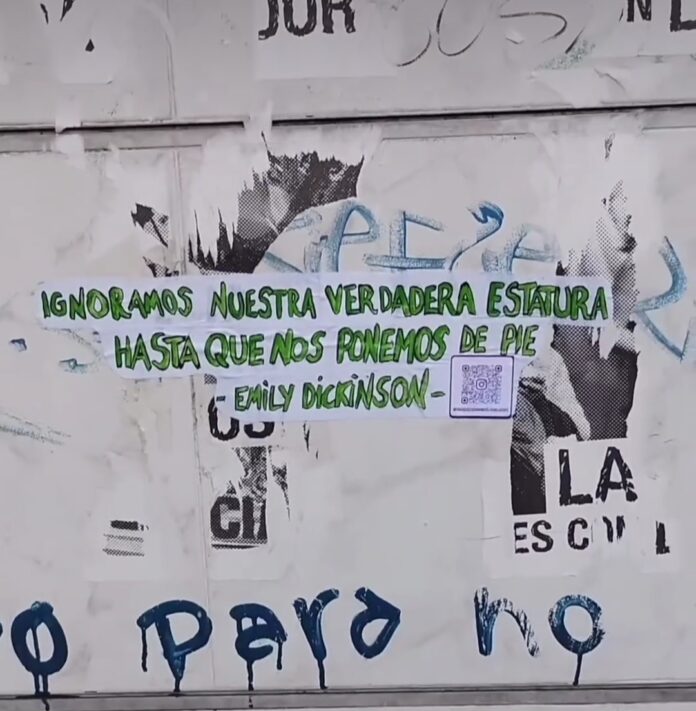 “Uno generalmente marcha con una agrupación o una entidad de la que forma parte y ahí esta cosa endogámica de estar metida ahí adentro con una pancarta, que por ahí la ve tu compañere, pero que no trasciende demasiado”- explica Roxana y agrega “Quisimos que estos escritos estén en la parada del colectivo, que tenga más impacto, que llegue a más personas y que se pueda ampliar el discurso”