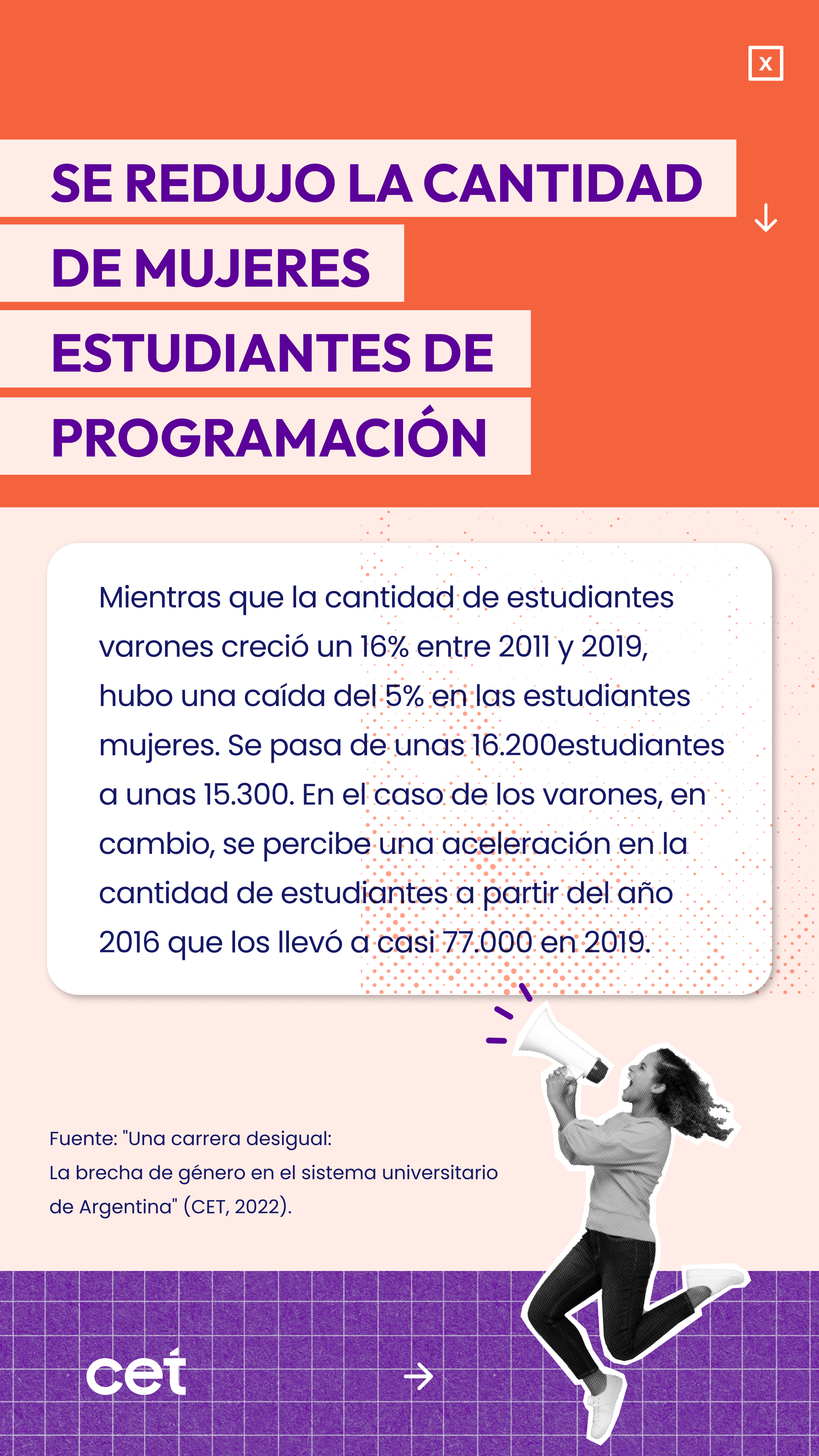 Este curso para el que podés aplicar hasta el 9 de junio fue ideado como conclusión de una investigación que desarrollaron titulado UNA CARRERA DESIGUAL, en donde en principio quedó demostrado que las mujeres representan, en estas carreras tecnológicas solo el 34 % del total y si hablamos de programación solo el 17%.