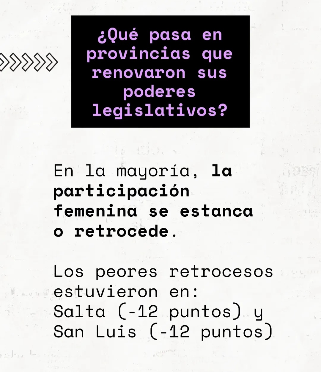 En total, siete distritos perdieron representación femenina: la Ciudad Autónoma de Buenos Aires, Chubut, Entre Ríos, La Pampa, San Juan, San Luis y Tierra del Fuego. Aunque el panorama general resulta poco alentador, también se registraron avances en cinco provincias -Buenos Aires, Formosa, Neuquén, Río Negro y Santa Fe-, donde aumentó la presencia de mujeres en el Congreso.
