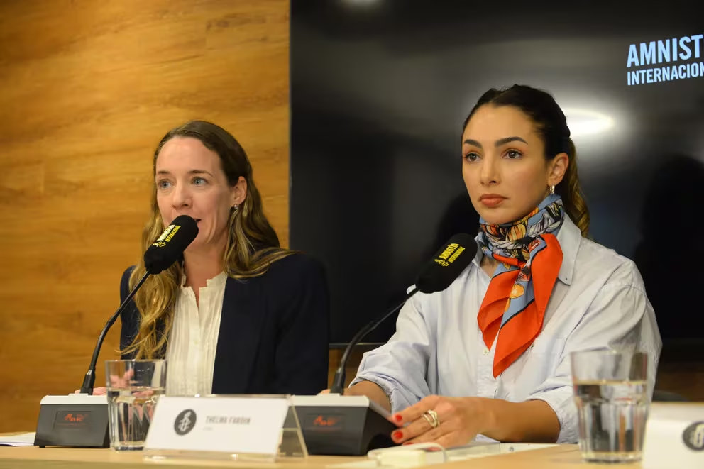 Tras conocerse los términos de la audiencia, Thelma Fardín se acercó al edificio de Amnistía Internacional Argentina, junto a su abogada ante la Justicia brasilera, Carla Andrade Junqueira; su abogado ante la Justicia argentina, Martín Arias Duval; y la directora adjunta de AIA, Paola García Rey.