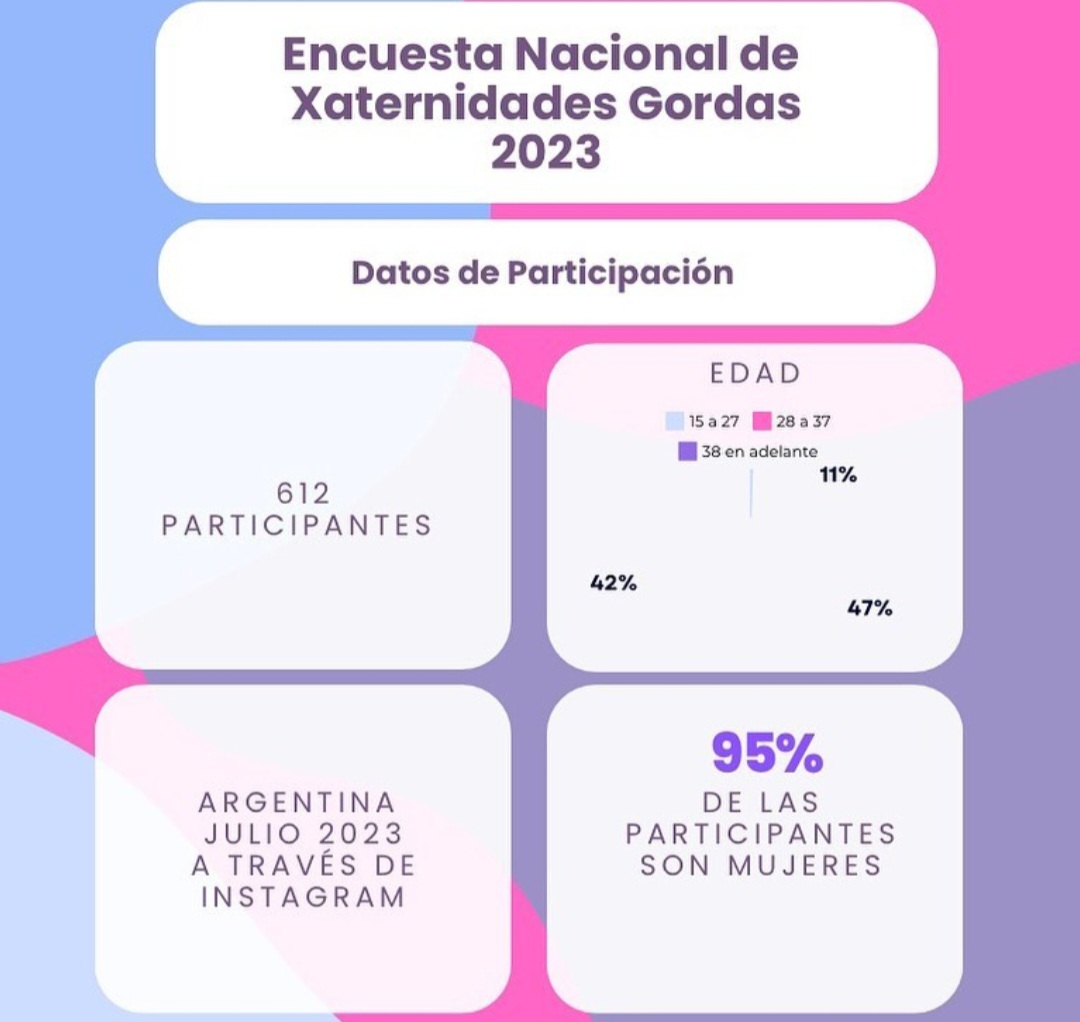 El punto de partida fue tratar de conseguir datos sobre lo que contaban las maternidades gordas y realizaron una Encuesta de un mes en Instagram destinada a personas gestantes gordas que fue contestada en un 95 % por mujeres.