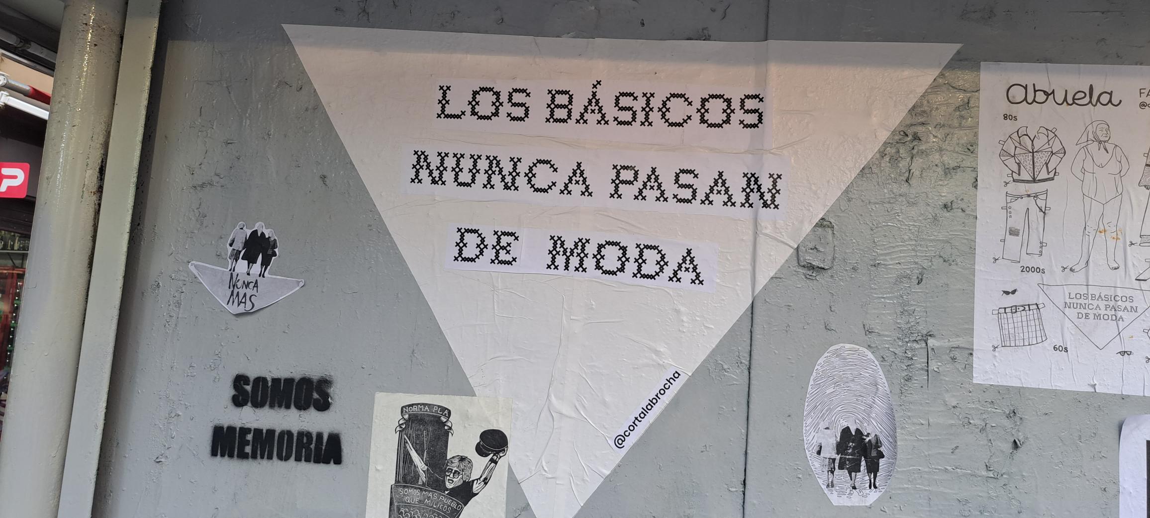 Remeras con imágenes de Maradona, La Renga, El Indio Solari, otras especiales compradas en el día con la leyenda “Luche como una abuela”; pañuelos con las consignas «Son 30 mil y están presentes». «Memoria siempre». «Ni Milei ni nadie va a borrar lo que somos». «Memoria y futuro». «Hebe vive en la Plaza». «No a la Junta Mileitar” se replican en todos los rincones.