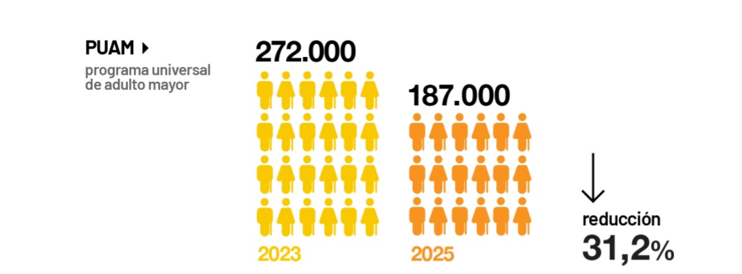 - Sin la moratoria previsional vigente, la cantidad de titulares de la Pensión Universal de Adulto Mayor (PUAM) debería ascender como única vía para jubilarse. Sin embargo, los destinatarios efectivos de la PUAM pasaron de ser 272.000 a 187.000. Hay pocas altas y las suspensiones crecieron del 3% al 25%.