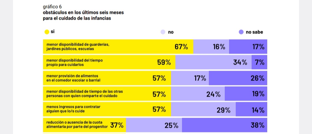 – En los hogares con infantes, el 67% de las familias dijo tener más dificultad para obtener vacantes en espacios de cuidado y jardines.