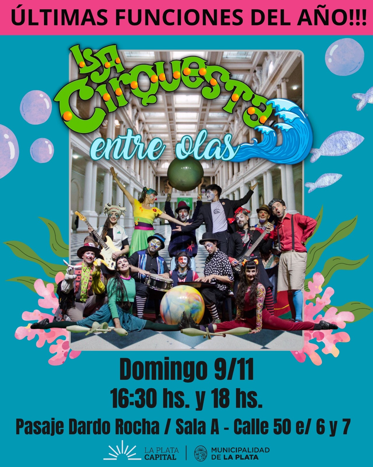 La Cirquesta, compañía musical circense de la ciudad, dará las últimas funciones del año este Domingo 9 de noviembre en el Centro Municipal de las Artes Pasaje Dardo Rocha (50 e/ 6 y 7) con dos funciones, a las 16:30 y 18:00 hs