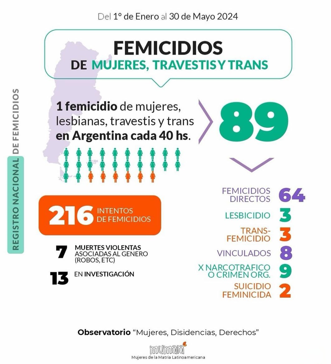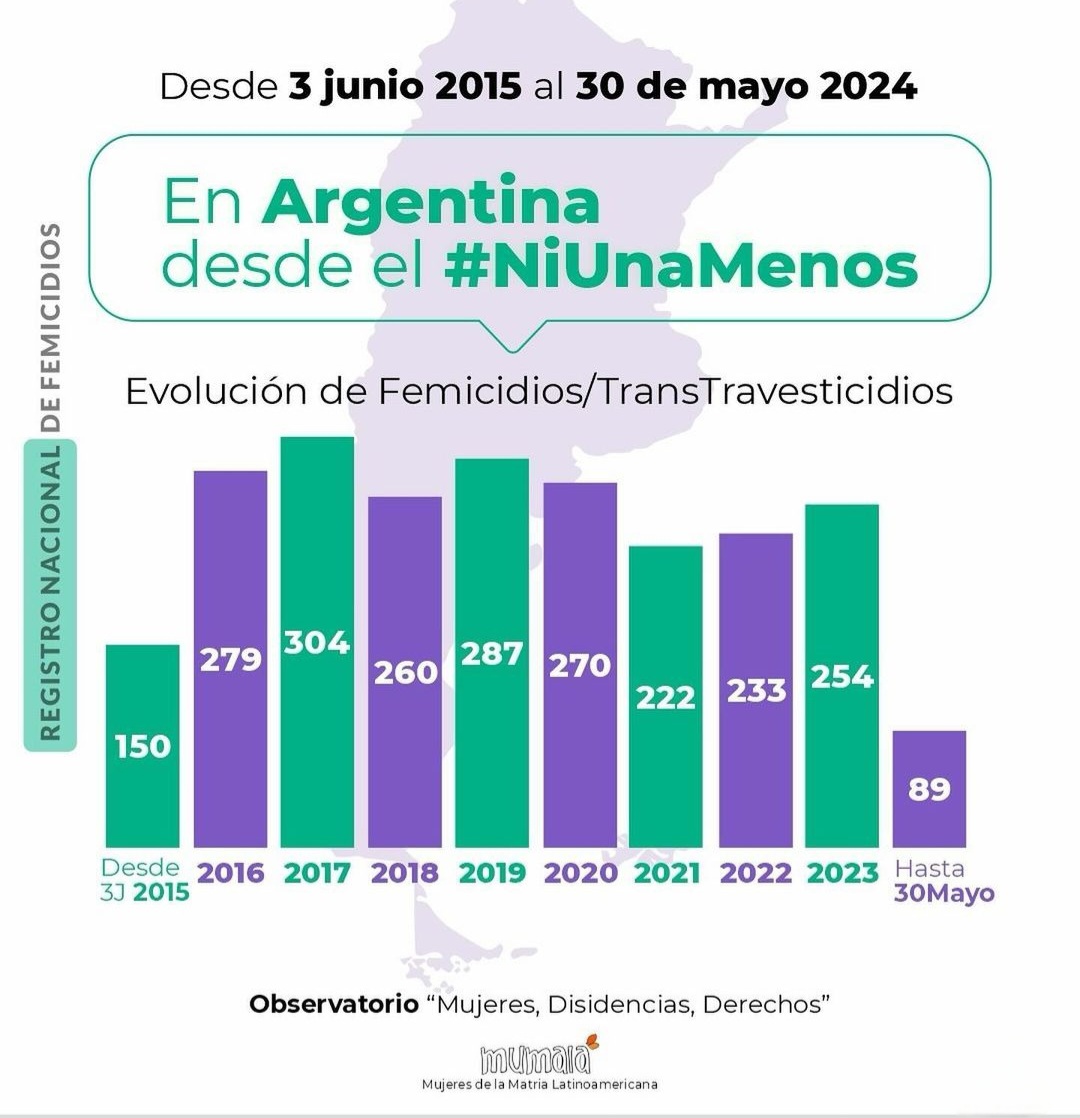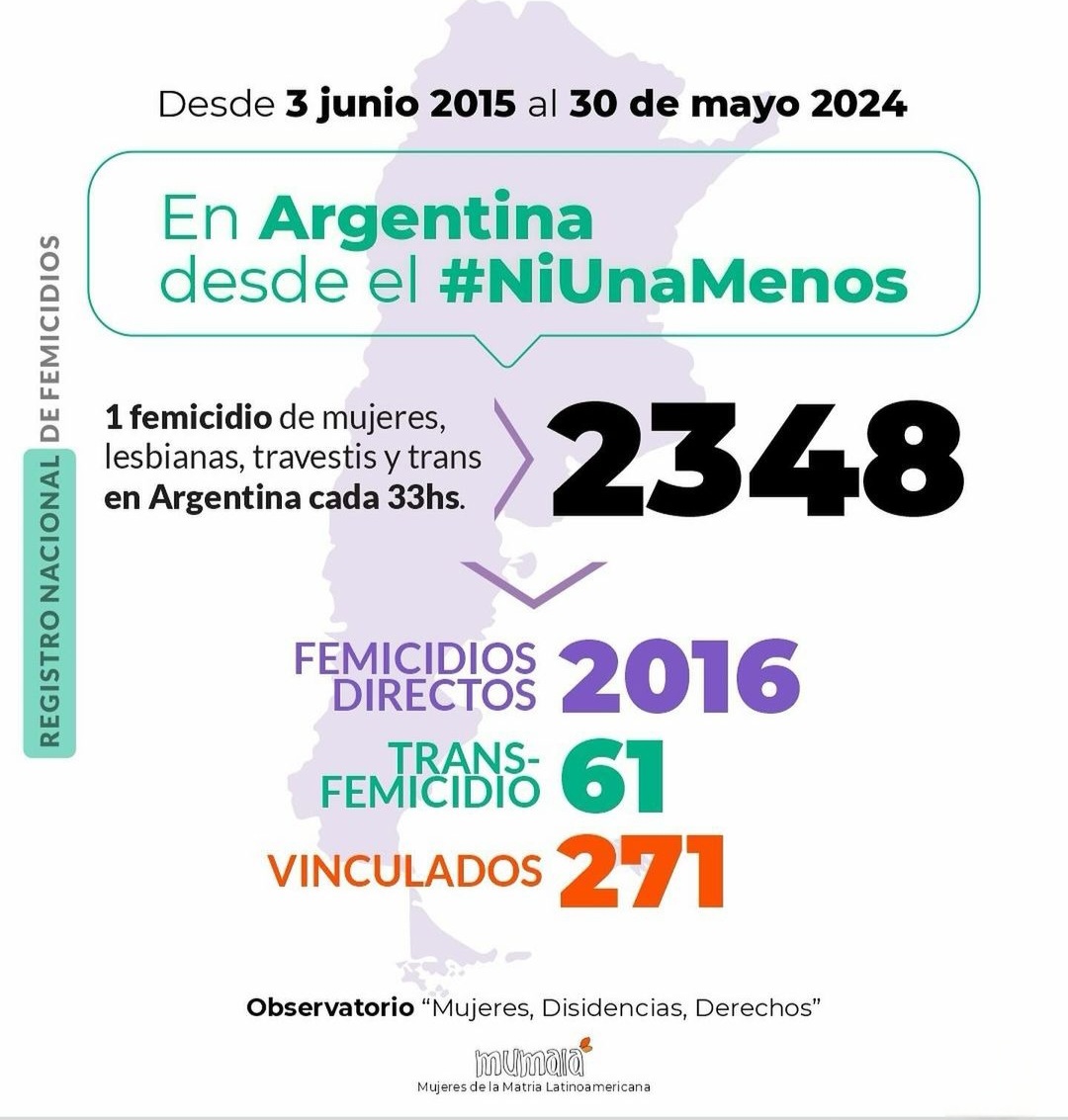 Desde la primera movilización masiva exigiendo #NiUnaMenos en 2015 hasta mayo de 2024, registramos 2348 femicidios, femicidios vinculados y trans/travesticidios en nuestro país.
