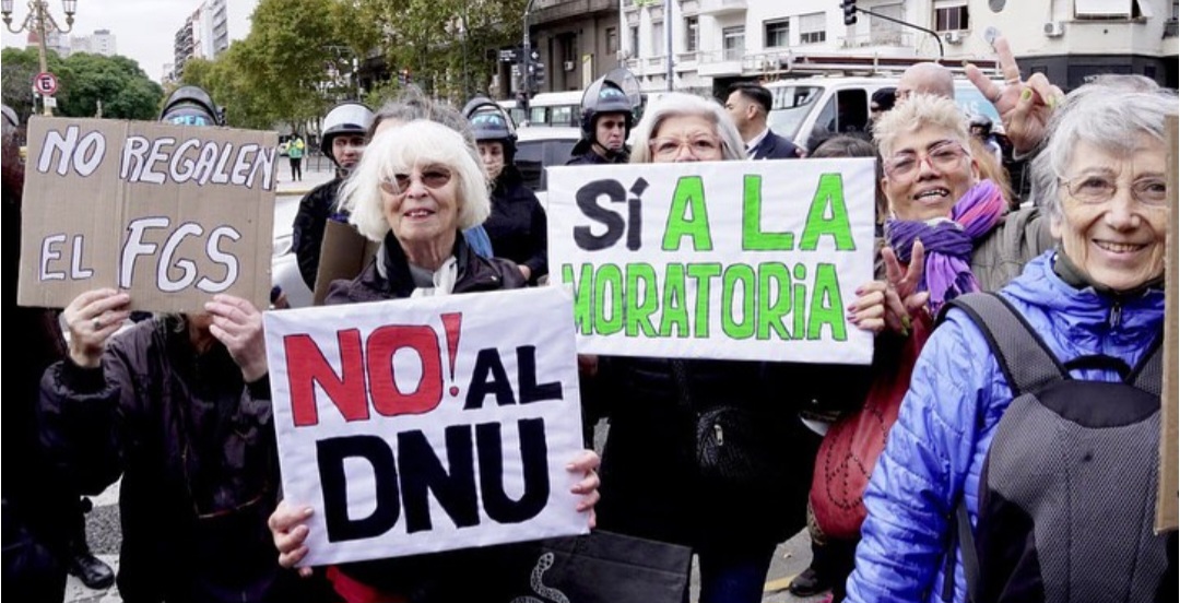 - Rechazo al fin de la moratoria previsional, que afecta principalmente a mujeres amas de casa sin aportes.