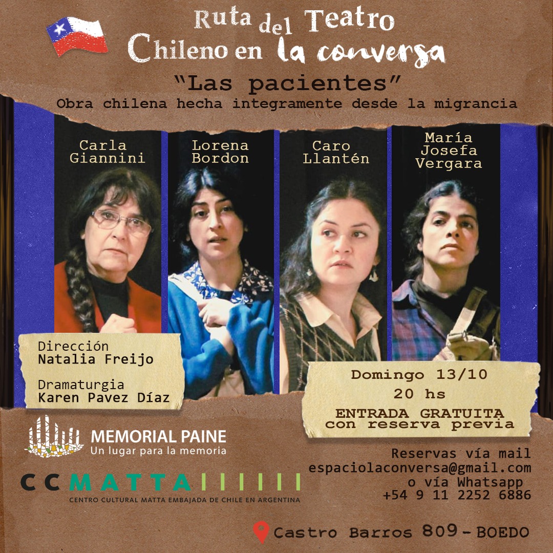 Las Brujas que Salem charlamos con ella sobre esta emotiva puesta en escena y nos explicó que: “Los pacientes está basada en una historia real en Chile, en Paine, protagonizada por mujeres. A Paine se lo conoce como “el callejón de las viudas” porque durante la reforma de la dictadura de Pinochet ellas salieron a buscar a sus seres queridos desaparecidos sin descanso, como estamos acostumbradas a ver que hacen las mujeres”