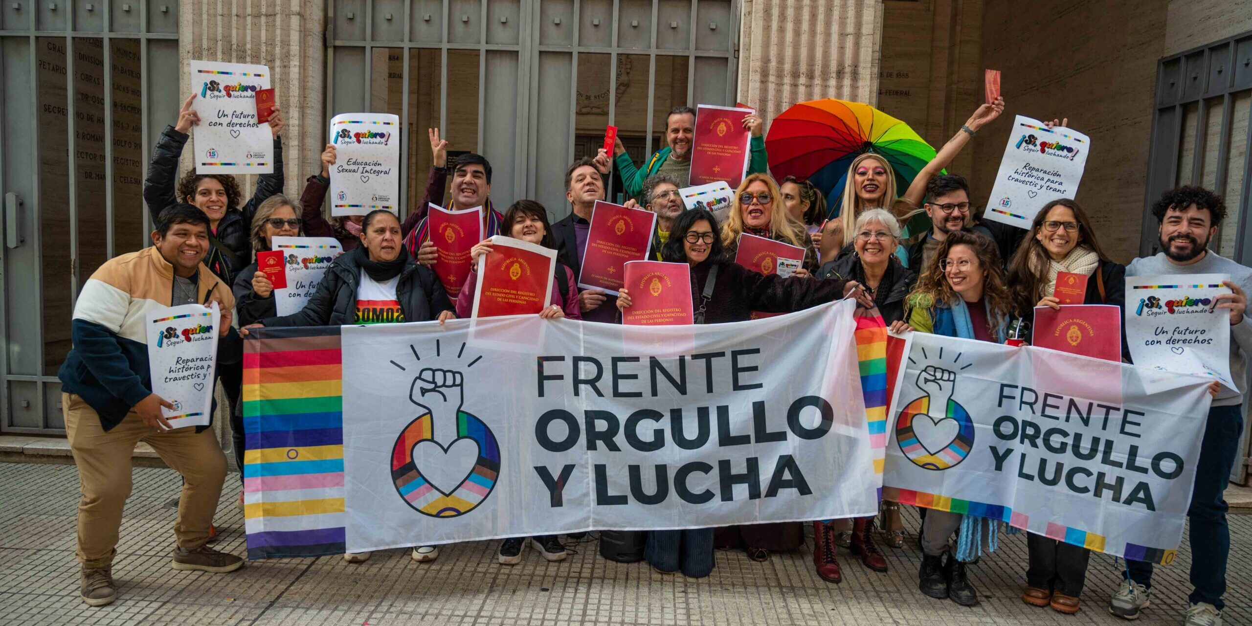 A 15 años de la aprobación de la Ley de Matrimonio Igualitario, activistas de la diversidad sexual y personas aliadas realizaron un “libretazo” frente al Registro Civil de la Ciudad de Buenos Aires, con música, colores y sus libretas de matrimonio rojas en alto. El objetivo: celebrar y defender esta normativa, aprobada el 15 de julio de 2010, en un nuevo aniversario y en un contexto de ataque a los derechos ganados.