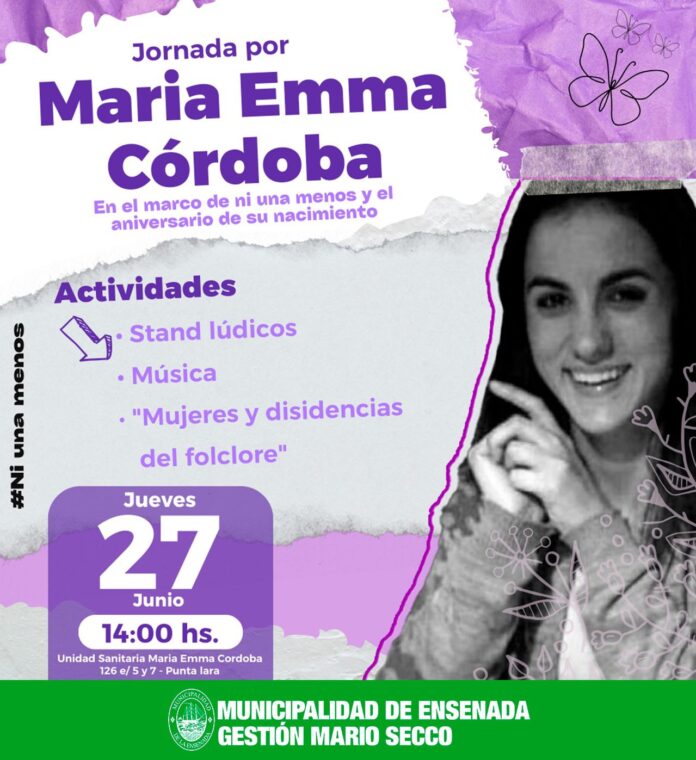 En el marco del Ni una Menos y en el aniversario del natalicio de María Emma Córdoba se organizó, para mañana una jornada en la Unidad Sanitaria que lleva su nombre, ubicada en la calle 126 entre 5 y 7 de Punta Lara.