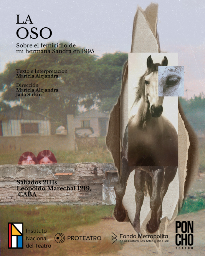 Todos los sábados de abril se presenta “La Oso” en Poncho Teatro en Villa Crespo. Se trata de un unipersonal dirigido por Mariela Alejandra y Jada Sirkin y actuado por la propia Mariela que narra, ni más ni menos, que la historia real de ella y su hermana Sandra, asesinada en un femicidio hace 30 años atrás.