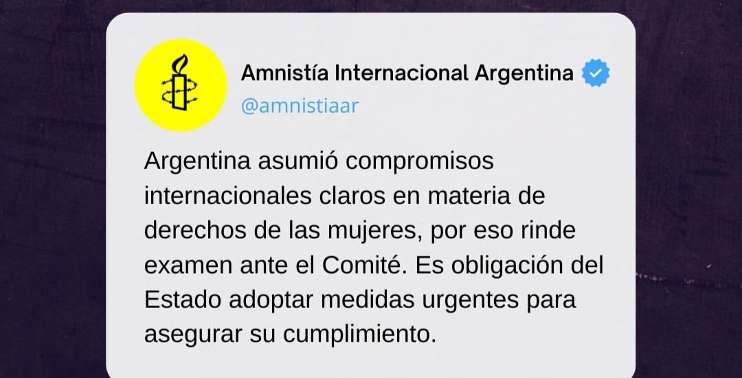 “Argentina asumió compromisos internacionales claros en materia de derechos de las mujeres y hoy debe adoptar medidas urgentes para asegurar su cumplimiento. Lo que está en juego es la vida, la autonomía, los derechos sexuales y reproductivos y la igualdad de millones de mujeres y adolescentes. No hay margen para demoras: el Estado debe dar explicaciones antes del próximo ciclo de revisión y mostrar medidas concretas, no promesas”, expresó Mariela Belski, directora ejecutiva de Amnistía Internacional Argentina.