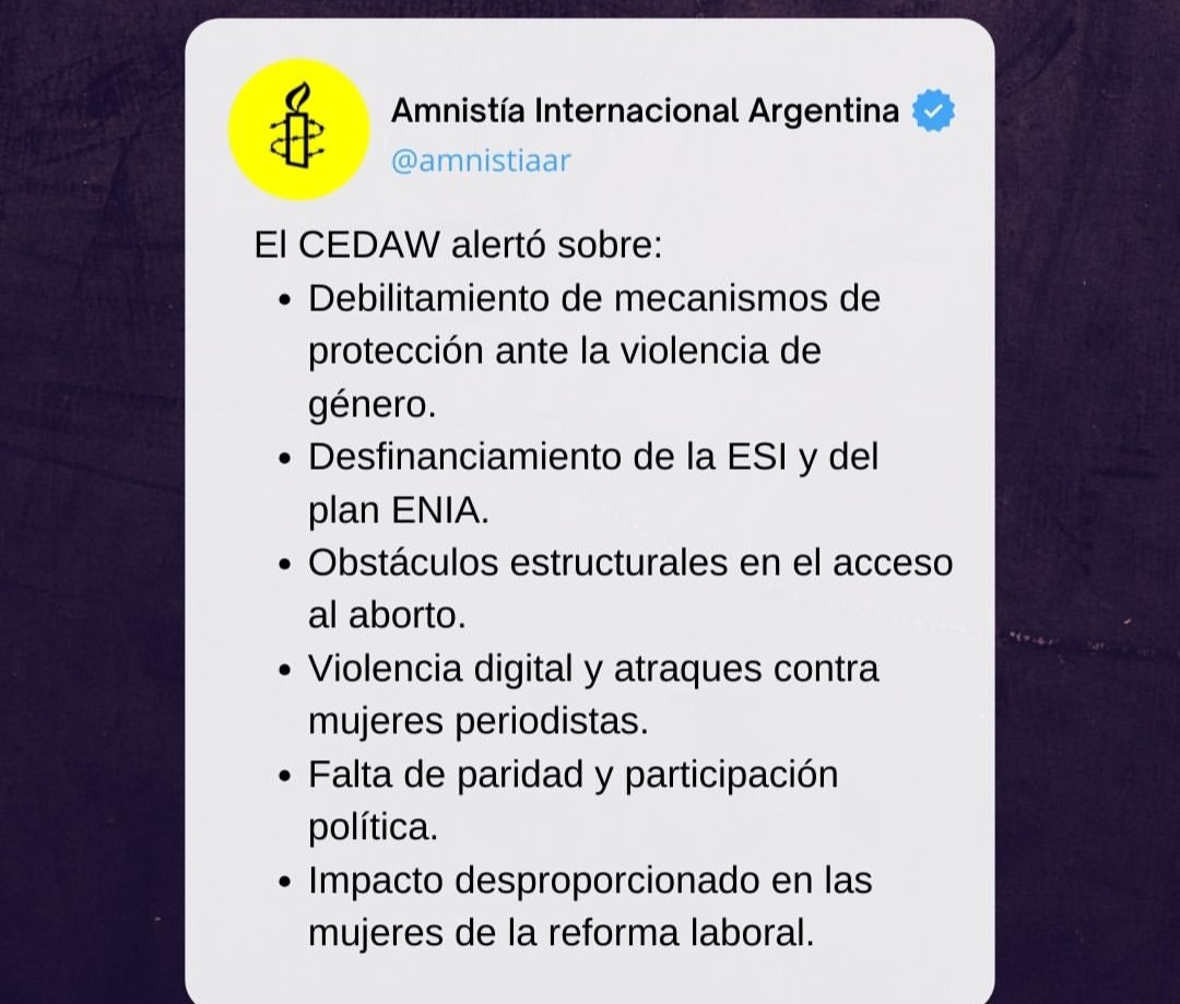 El Comité para la Eliminación de todas las Formas de Discriminación contra la Mujer (CEDAW) expresó su profunda preocupación por los retrocesos registrados desde finales de 2023 en materia de derechos de las mujeres y diversidades en Argentina. El organismo alertó sobre el cierre y la degradación de instituciones clave, la retracción de políticas públicas y la reducción drástica del presupuesto destinado a prevenir la violencia de género, garantizar el acceso a la salud sexual y reproductiva, sostener la Educación Sexual Integral y el Plan Nacional de Prevención del Embarazo No Intencional en la Adolescencia (Plan ENIA).