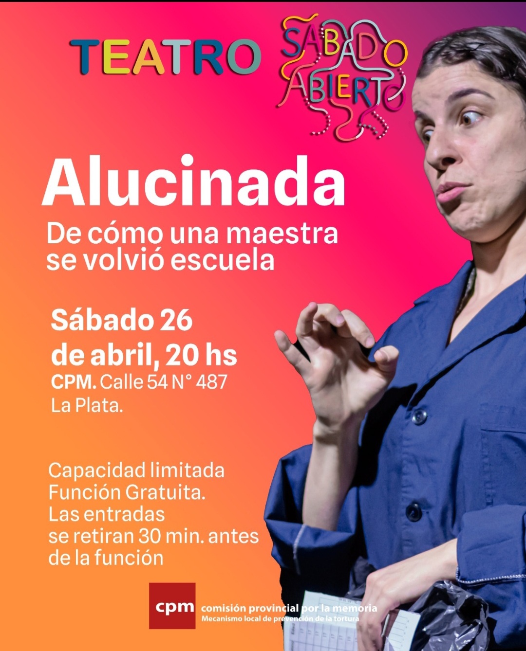 ”Alucinada: De cómo una maestra se volvió escuela” se estrena este sábado 26 de abril a las 20 horas en la Casa del Centro Provincial por la Memoria ubicada en la calle 54 Nro 487 de La Plata