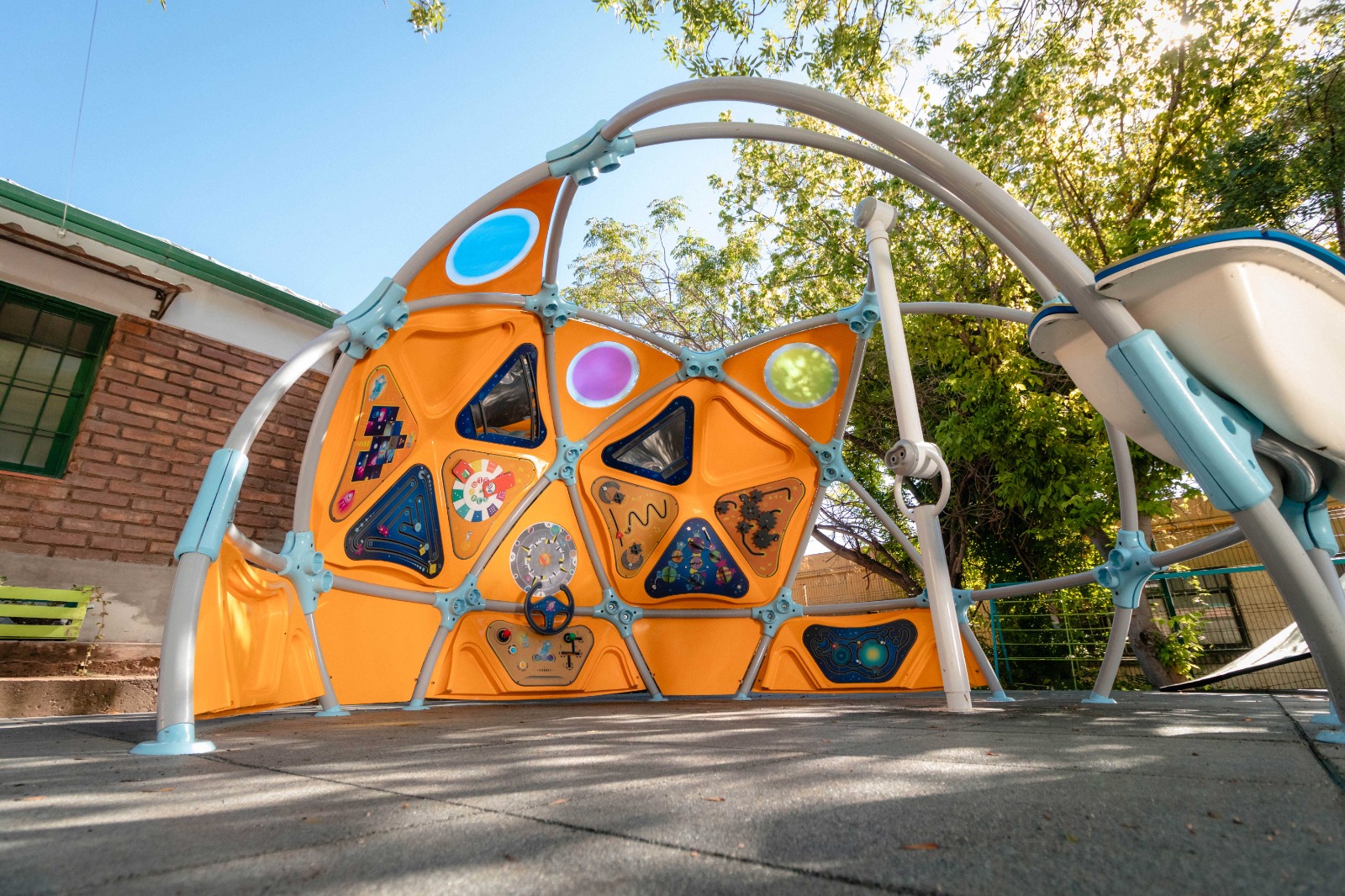 Se trata de una iniciativa para instalar 100 Domos Cósmicos: un juego de patio diseñado para estimular el desarrollo cognitivo y motriz de los niños.