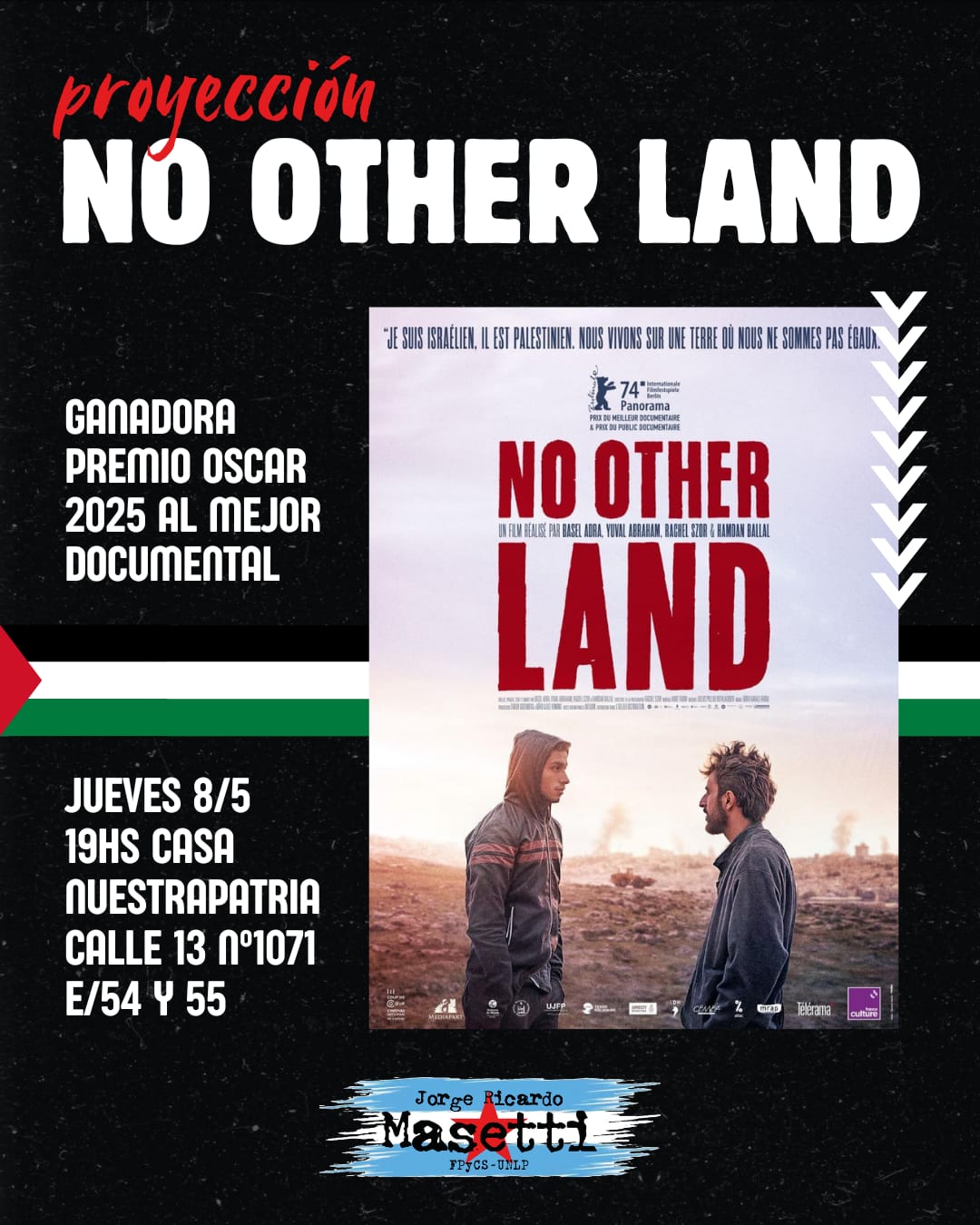 El documental NO OTHER LAND llega a nuestra ciudad este jueves 8 de mayo a las 19 horas.