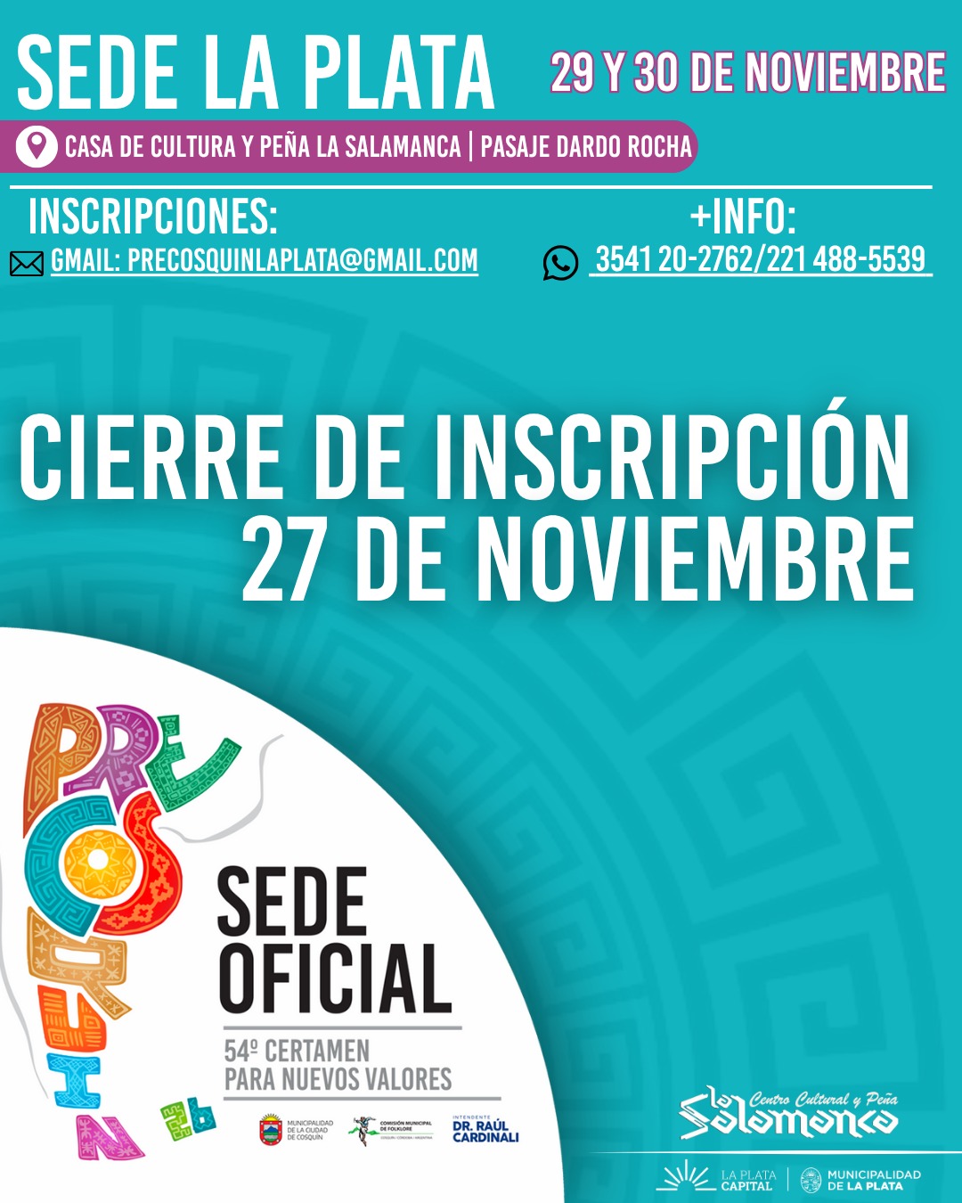 Los días 29 y 30 de noviembre del corriente año se realizará la competencia oficial del Pre Cosquín en nuestra ciudad, donde músicos, cantores y bailarines mostrarán su arte con la ilusión de llegar a la Plaza Próspero Molina