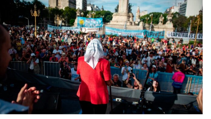 “Decimos y hemos dicho hace 47 años que la única lucha que se pierde es la que se abandona. Por eso, queridos compañeres, a seguir en la lucha. Se lo decimos nosotras, ‘las locas’, que a pesor de los bastones y las sillas de ruedas seguimos de pie” arengó Taty ante una concurrencia emocionada cuya respuesta unánime fue el ya clásico “Madres de la plaza/el pueblo las abraza”.