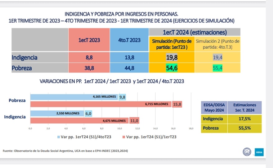 El Observatorio de la Deuda Social informa que se encuentra disponible en soporte digital la nota de divulgación “Un final anunciado: más pobres, pobres más pobres y más desiguales ¿Marcas del pasado o más futuro por venir?”. A los fines de realizar un análisis de los cambios socio-económicos ocurridos durante el último año, se trabaja en una comparación de datos oficiales del primer trimestre de 2024 con aquellos correspondientes al primer y cuarto trimestre de 2023.
