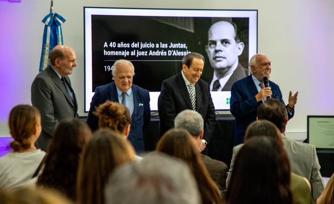 Finalmente, Santiago D’ Alessio relató escenas importantes de su historia familiar y realizó una semblanza de su padre. “Es una inmensa alegría compartir este homenaje con quienes fueron para él mucho más que colegas en aquel gran desafío para la democracia”, dijo.