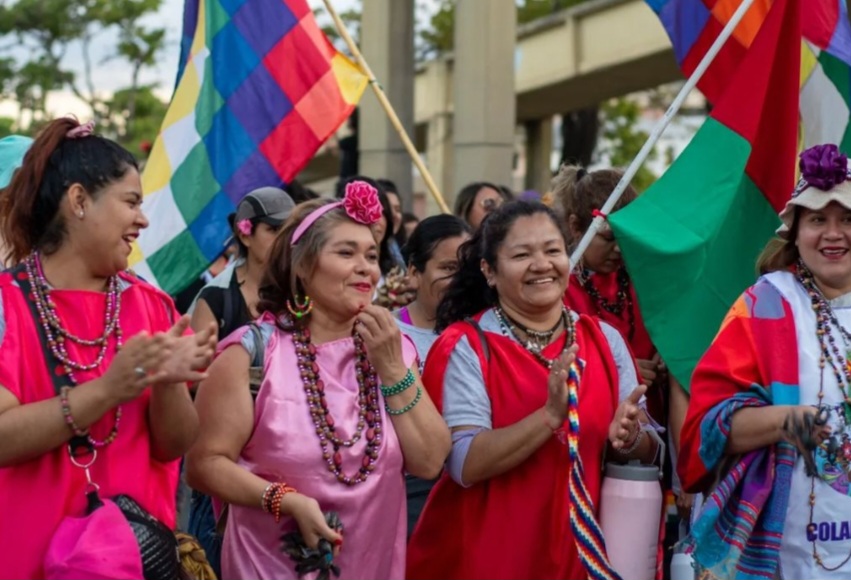 Por todo esto durante todos los días que duró el cuentro y en la Asamblea Feministas de Abya Yala los temas centrales fueron las luchas territoriales en defensa del agua, del bosque y de la vida. En ella participaron distintas comunidades orginarias y pueblos organizados. Se oyeron las voces del Movimiento de Mujeres de Kurdistan, de Mujeres de la Sexta (México), mujeres de la CONAIE (Ecuador), sanadoras ancestrales como Lolita Chávez (Guatemala), y mujeres y disidencias de Perú, Bolivia, Uruguay, Colombia, Paraguay, que son parte de distintas luchas por el cuidado del territorio tierra y del territorio cuerpo. Fue un momento especial en el que se expresó la solidaridad con las mujeres y el pueblo de Palestina, frente al genocidio del estado de Israel, a través de la presencia de activistas de Sandía (feministas solidarias con Palestina), de la Campaña Fuera Mekorot, y del Comité de Solidaridad con Palestina.