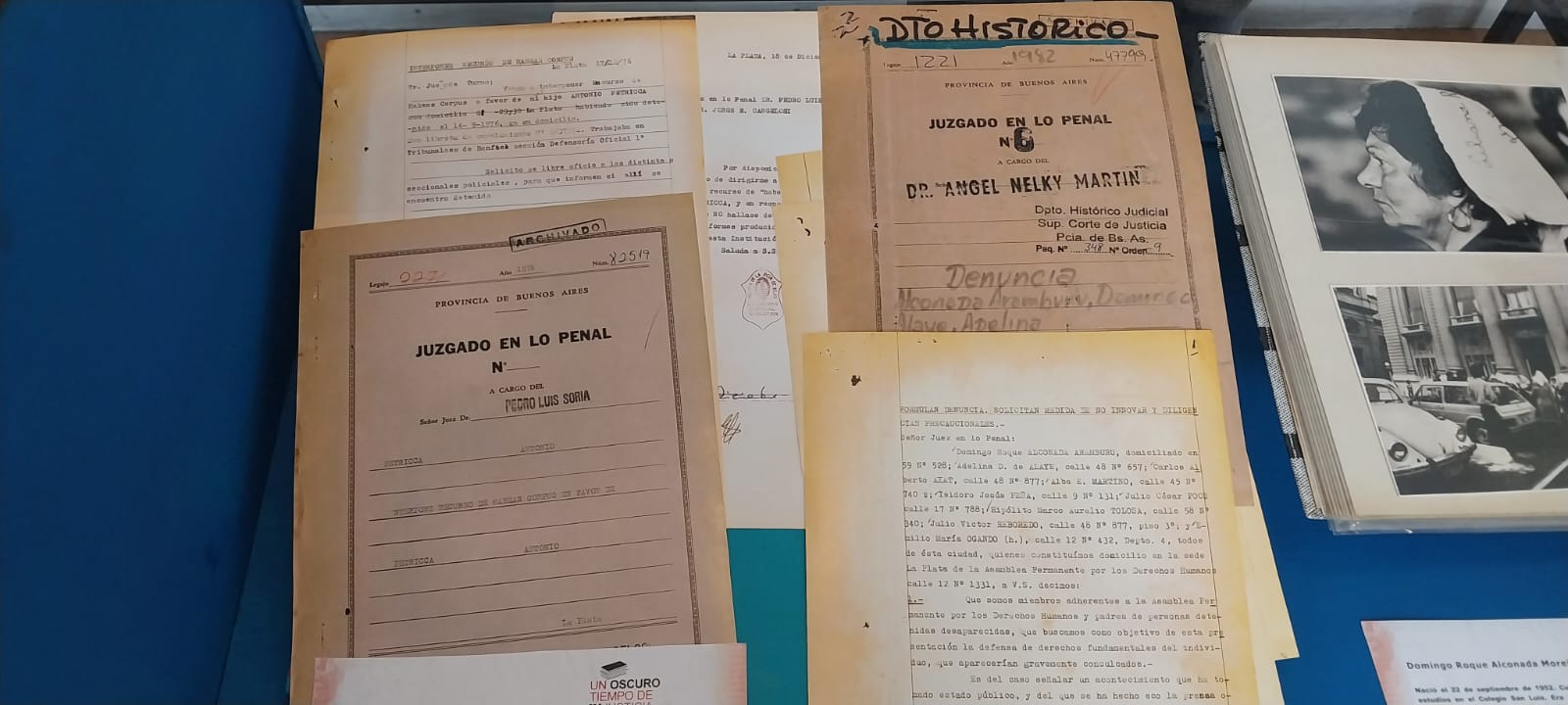 La muestra “Un oscuro tiempo de (in) justicia” propone un recorrido a través de expedientes judiciales, fotografías y otros documentos que atestiguan el rol del Poder Judicial en la última dictadura cívico-militar. La muestra pertenece al Archivo Provincia de la Memoria y pretende llamar la atención sobre las complicidades, pero también sobre las resistencias en esos oscuros tiempos de la historia argentina.