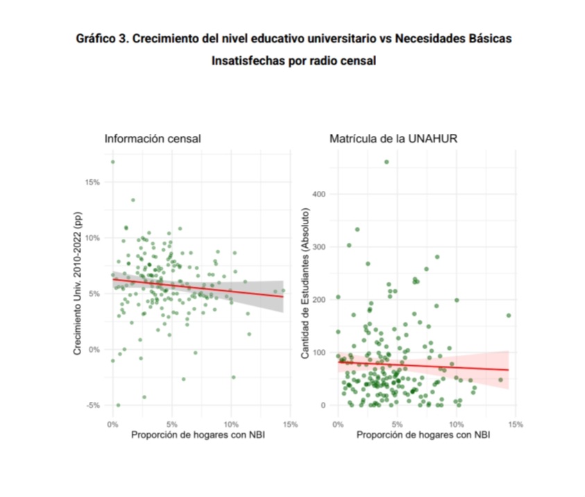 Este dato, afirma el estudio, “confirma una distribución del acceso educativo al nivel superior territorialmente homogéneo y desvinculado de las privaciones materiales históricas presentes en el territorio”.